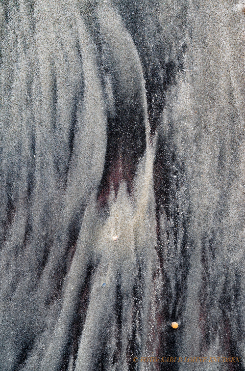 Walking along sandy beaches opens up exciting abstract motifs. The structure of the sand originates from mountains in Norway and Sweden. During the last ice age, mountains and rock were crushed to sand by the inland ice.